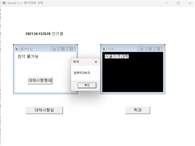 MessageBox(hWnd, L"실습과제물", L"대체시험형태", MB_OK);//학과