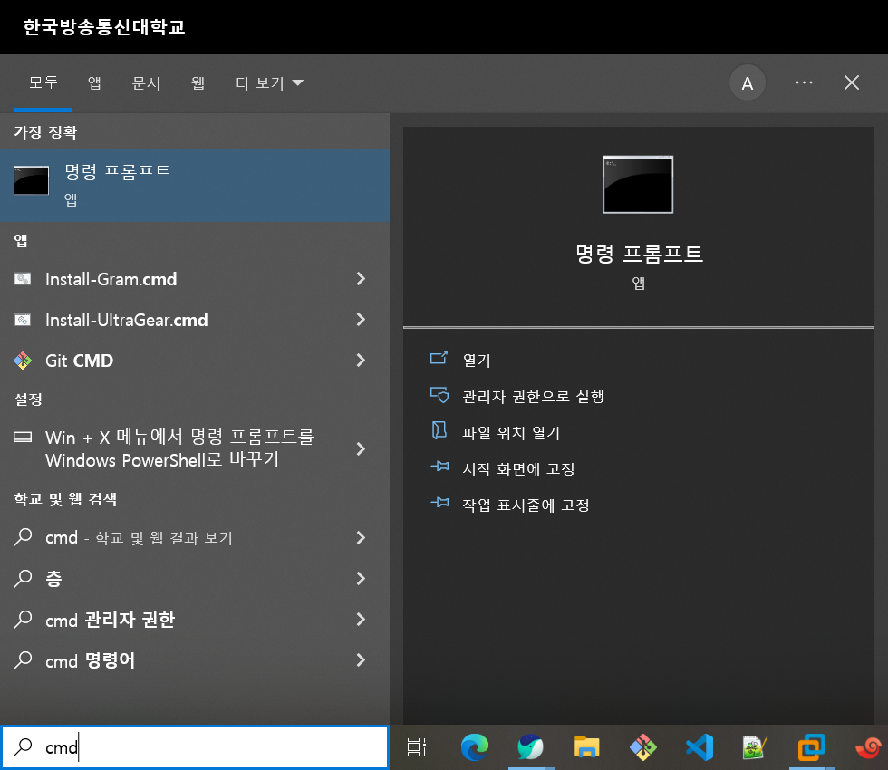 1. 시작 > cmd > 관리자 권한으로 실행