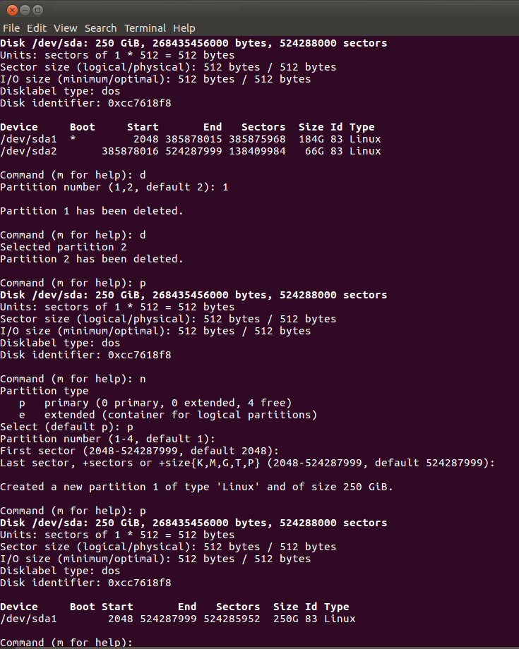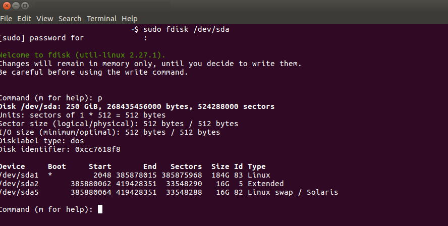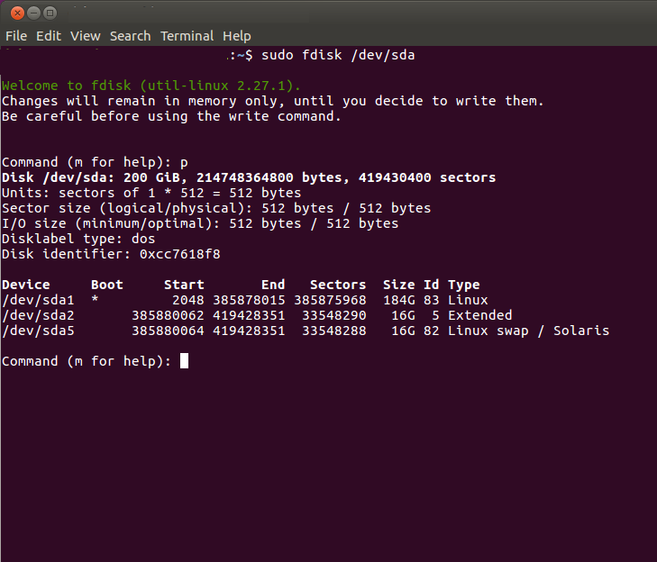 7-1. fdisk 로 파티션 테이블 정보 출력