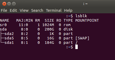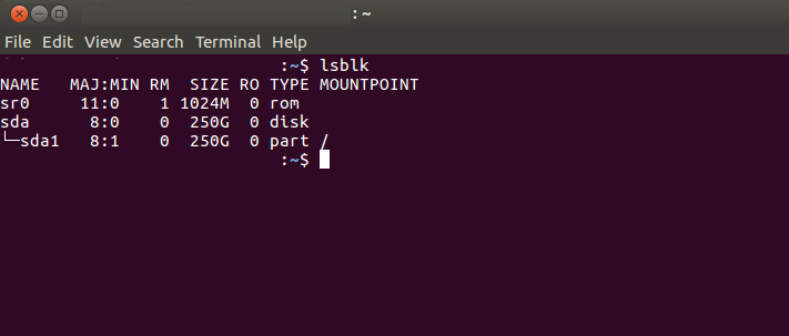 2. lsblk 로 리눅스 디바이스 정보를 확인