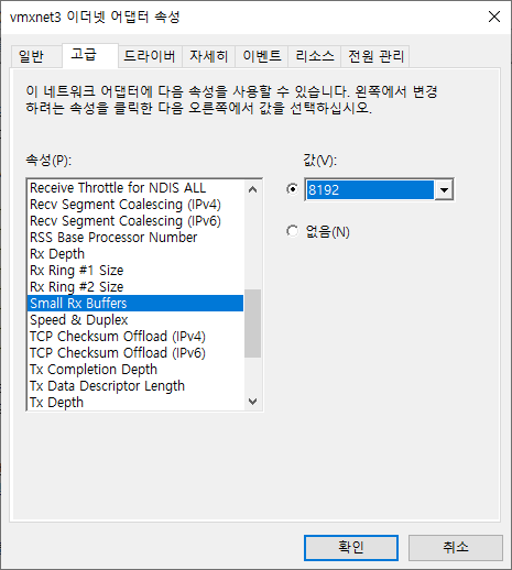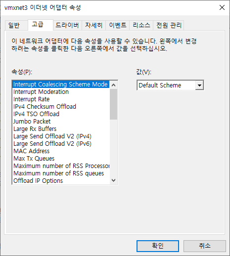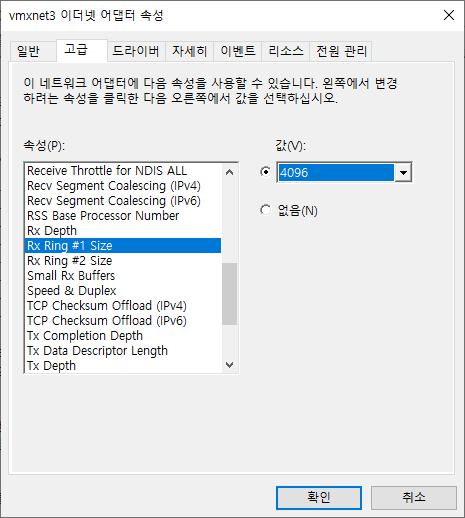 사용자 OS의 네트워크카드 설정을 변경하는 건데, VMware 권고안에 포함된 내용입니다.