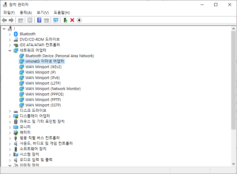 2. 네트워크 아답터 > wmaxnet3 이더넷 어댑터 > 우클릭 > 속성