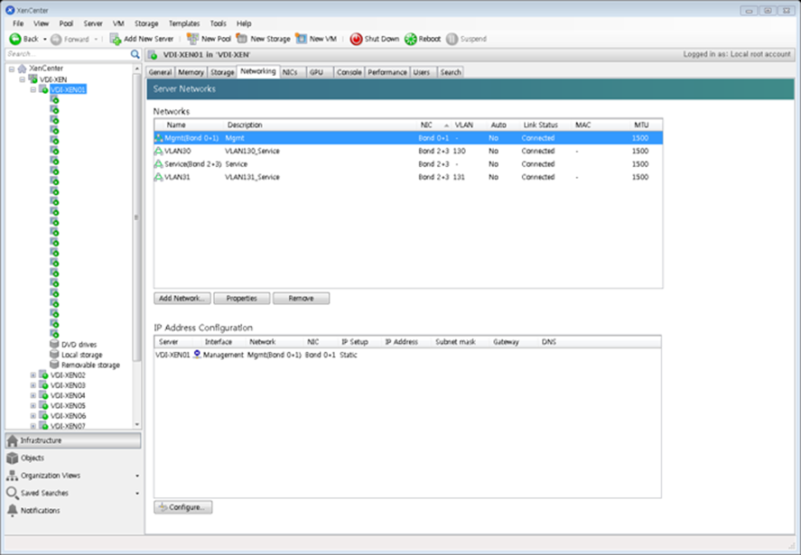 - Network 점검을 통해 Xenserver의 통신 확인