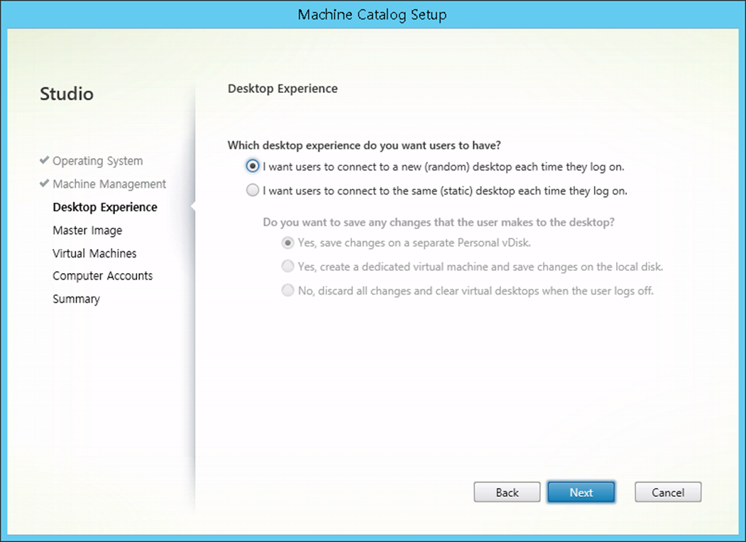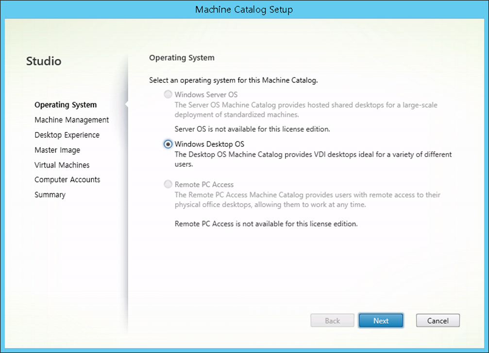 Desktop OS 용 카탈로그를 생성할 경우 선택