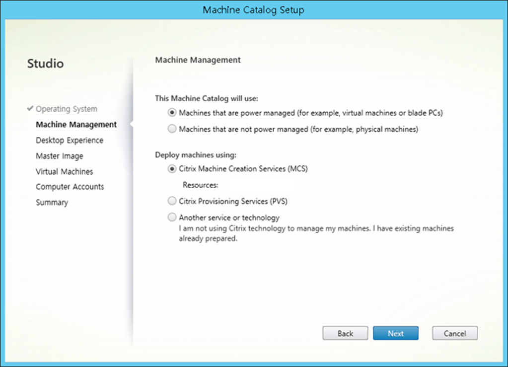 - Deploy machines using : 마스터 이미지를 관리하는데 사용할 방법을 선택