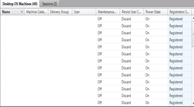 - Search 항목으로 이동하며, Delivery Group 에 등록된 모든 VM이 표시