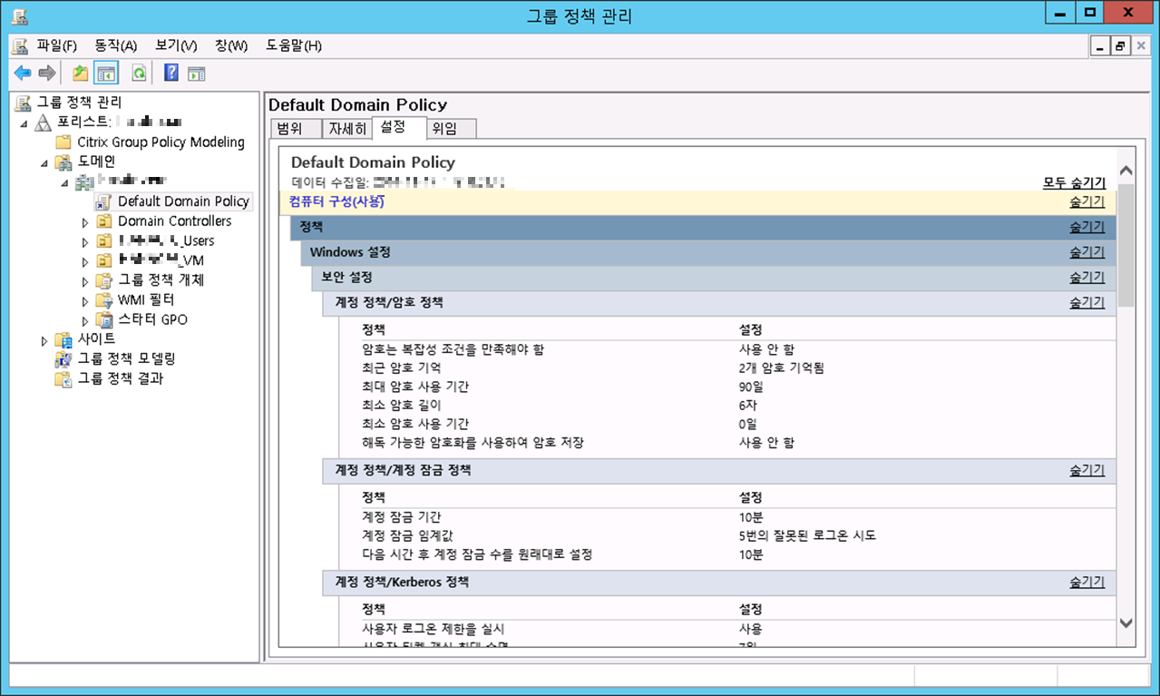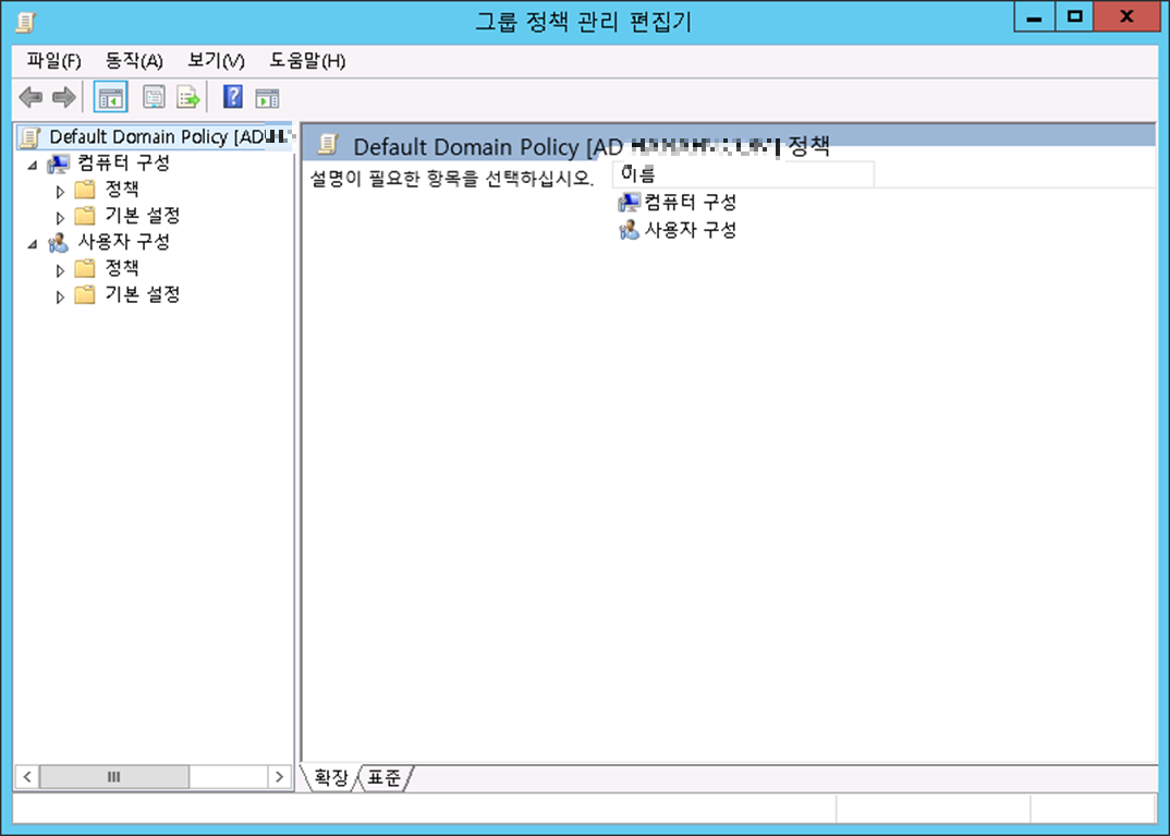 - AD 서버 접속 후 시작 > 관리 도구 > 그룹 정책 관리 콘솔을 실행