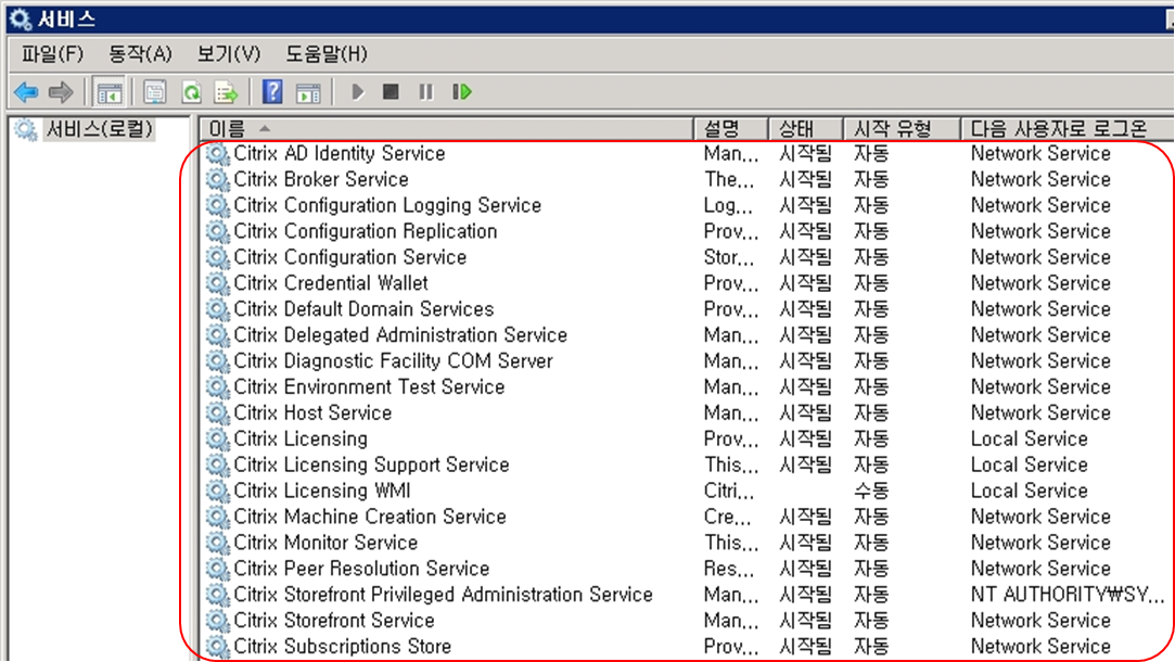 - 시작 유형이 자동이면서 상태가 시작됨이 아닌 서비스는 수동으로 실행