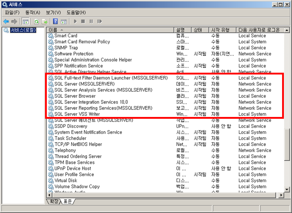 - 시작 유형이 자동이면서 상태가 시작됨이 아닌 서비스는 수동으로 실행