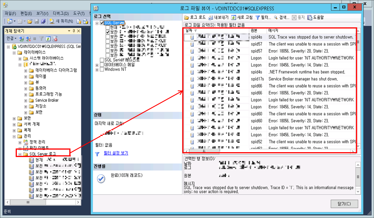 - 주기적으로 아래와 같이 로그백업이 정상적으로 동작하는지 로그 확인이 필요