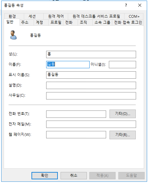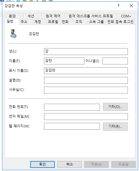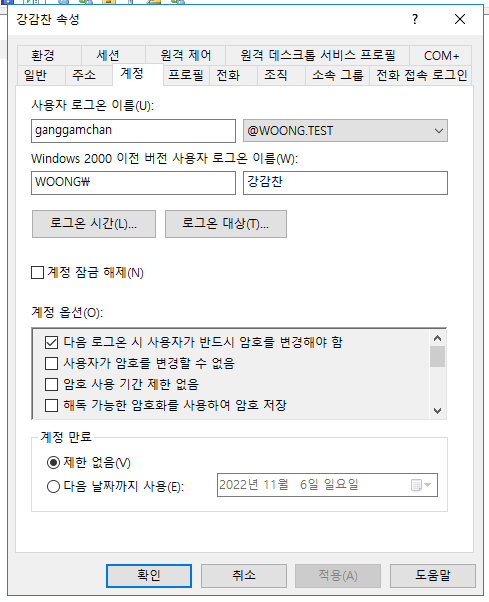 - 일반 사용자의 경우 보통 "다음 로그온 시 사용자가 반드시 암호를 변경해야 함"을 선택