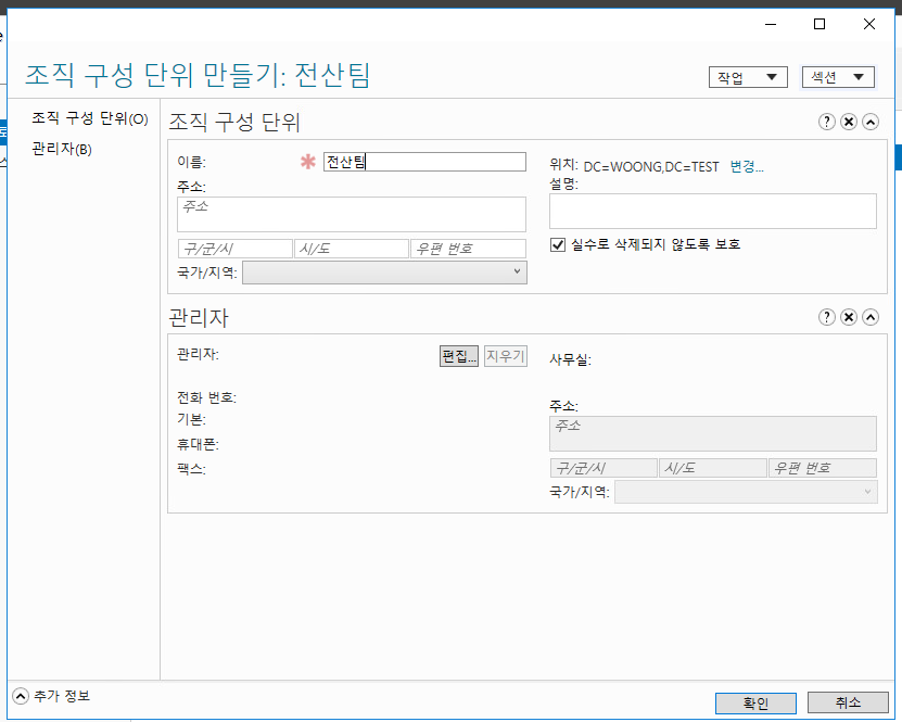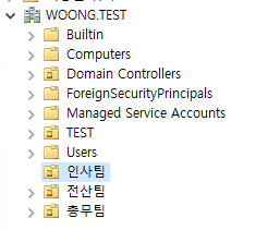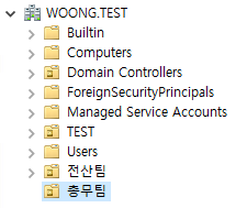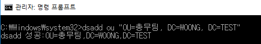 dsadd ou "OU=총무팀, DC=WOONG, DC=TEST"