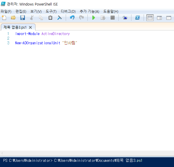 < PowerShell 을 사용한 조직 구성 단위 생성 >