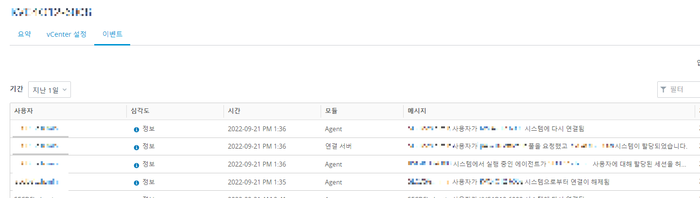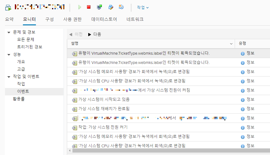 4. [vCenter] 모니터 > 작업 및 이벤트 > 이벤트 > 유형에 오류 확인(오류가 있는 경우 메모)