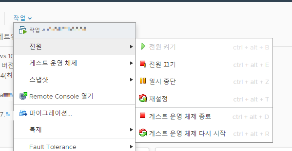 8. [vCenter] 작업 > 전원 > 게스트 운영 체제 다시 시작(소프트 재부팅) / 재설정(하드 재부팅)