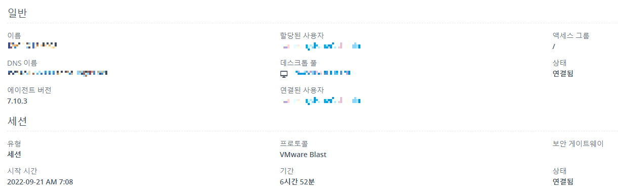 | 연결됨 | 가상 시스템이 세션에 있고 Horizon Client 디바이스에 원격으로 연결되었습니다. |