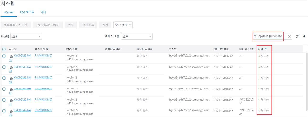 : Horizon 연결서버 관리자 웹페이지 접속 -> 인벤토리 -> 시스템 -> VM 검색 -> 에이전트 연결상태 "에이전트 연결불가"
