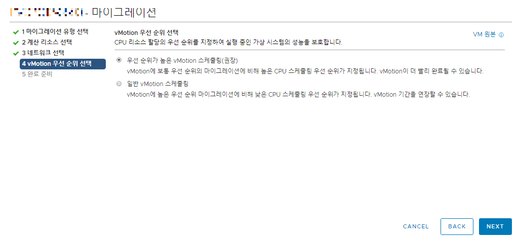 5. 우선 순위 높은 vMotion 스케쥴링(권장)