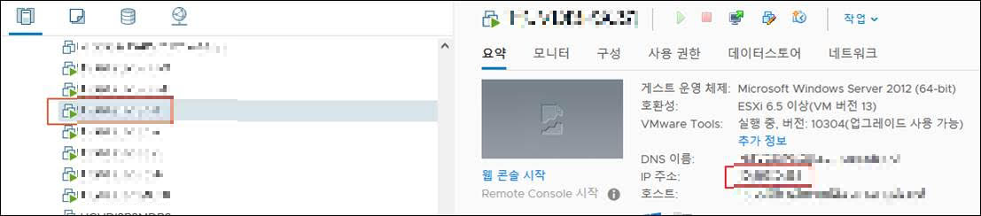 관리서버 Ping 확인 : vCenter에 접속하여 해당 관리서버 IP 확인 후 VM에서 Ping 확인하였을때 패킷 손실이 없으면 정상