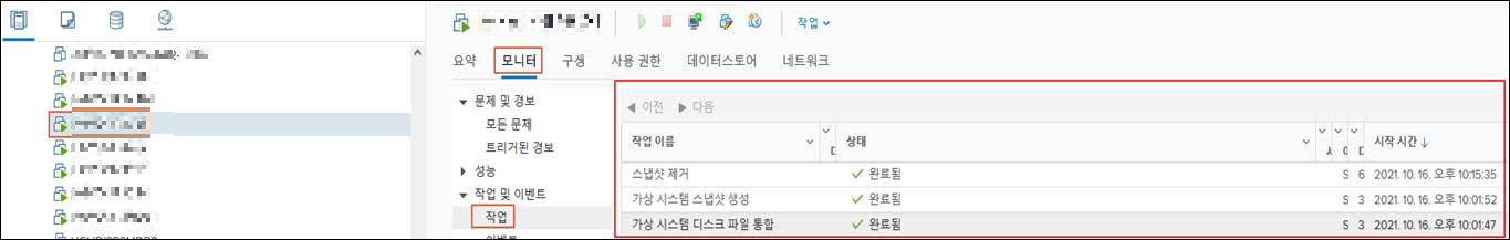 : ICMP 통신 불가 관리서버가 속한 vCenter 접속 -> 해당 VM을 선택 -> 모니터 -> 작업 로그에 "전원 꺼짐 또는 재부팅"