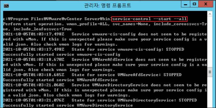 : vCenter OS 콘솔 접속 -> CMD(관리자 권한 실행)