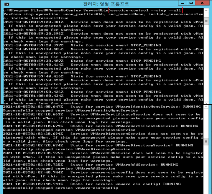 - vCenter 서비스 재시작하여 메모리 자원 반환 :