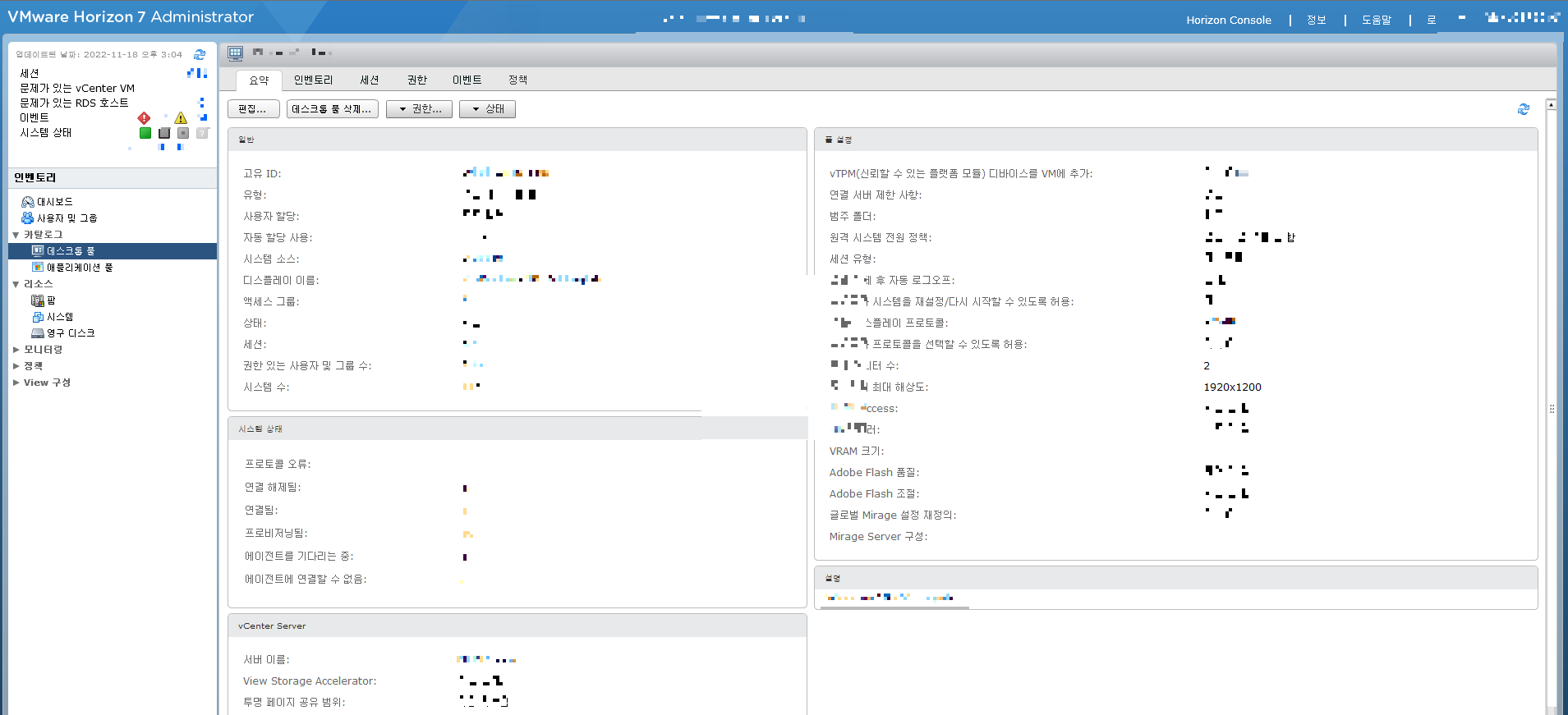 VMware 접속시 자동으로 접속이 해제 되는 현상이 있다면 해당 풀에 설정된 모니터 최대 해상도를 확인해봐야된다.