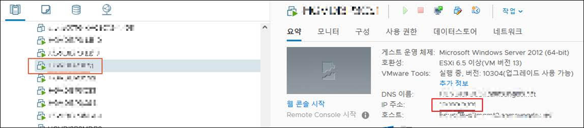 : vCenter에 접속하여 해당 관리서버 IP 확인 후 VM에서 Ping 확인하였을때 패킷 손실이 없으면 정상