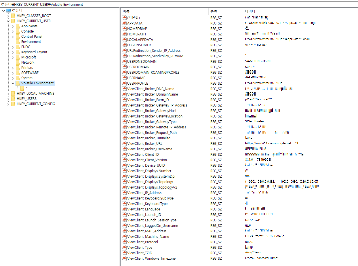 2. HKEY_CURRENT_USER\Volatile Environment 값 확인