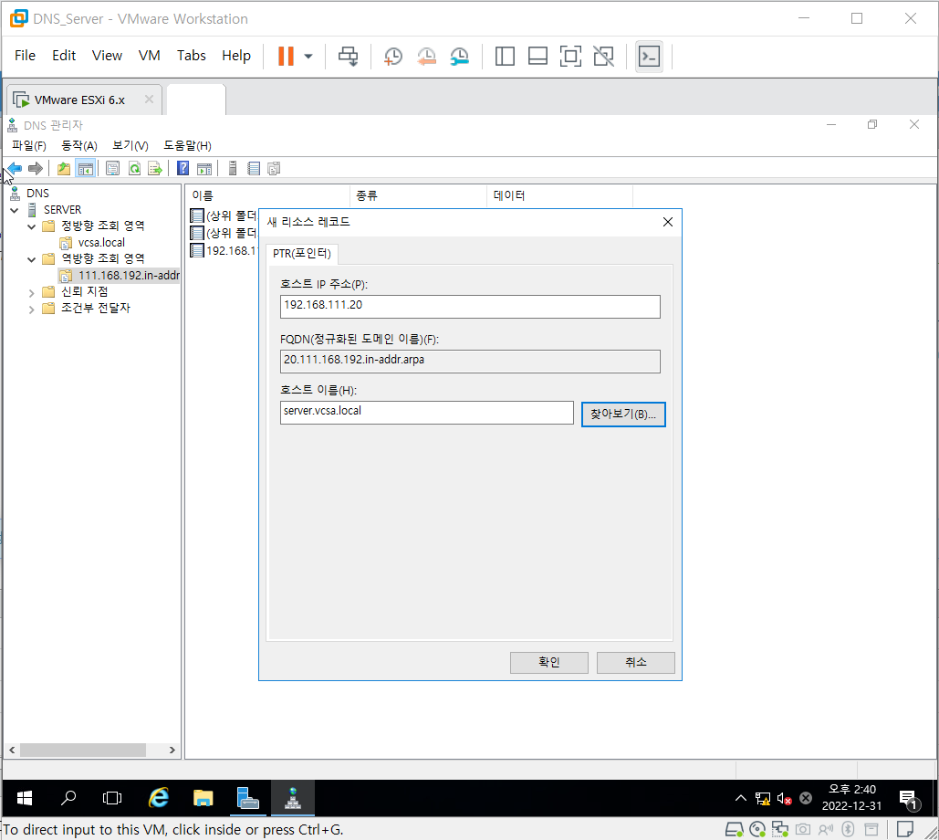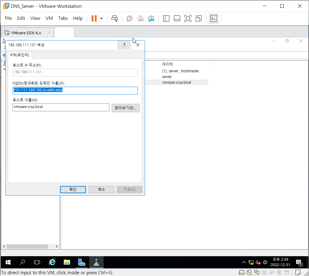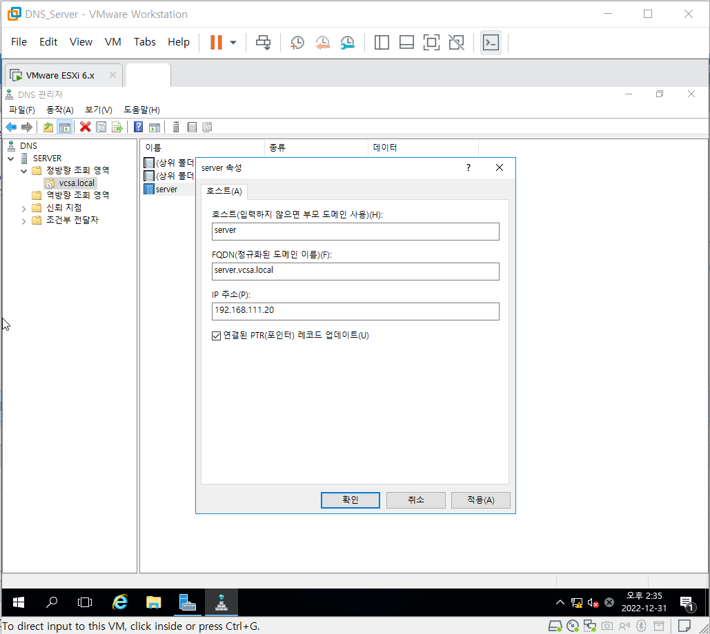 vCenter Server Appliance 를 설치 하기 위해서 가장 먼저 DNS 서버를 구축해준다.