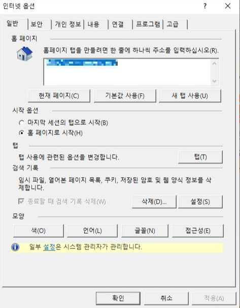 < 검색 기록 비활성화 GPO 적용 상태 >