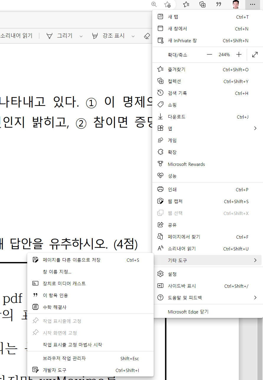 2. 풀어야된 문제를 EDGE에 PDF 불러오기 > 옵션 > 기타도구 > 수학 해결사 > 선택 > 문제 복사