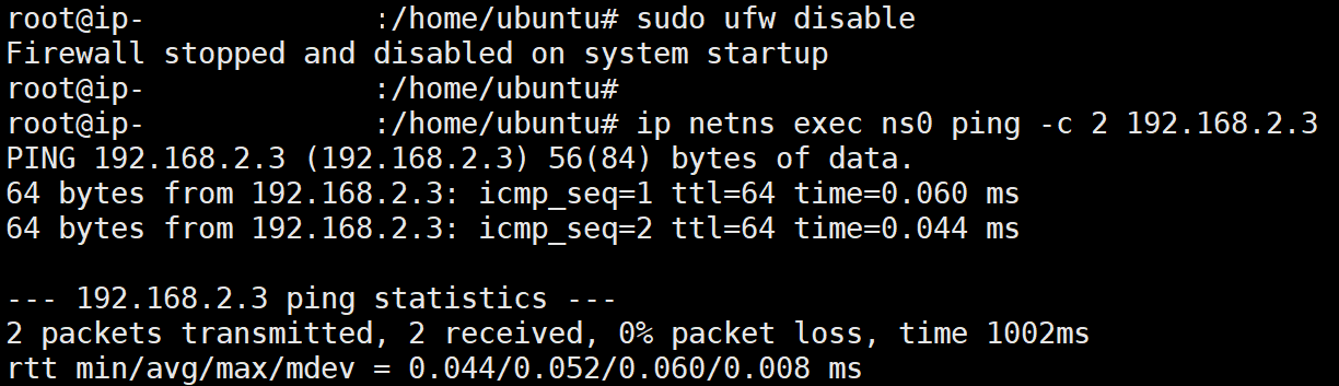 | |192.168.2.2 | <--- ceth0 in ns0 |