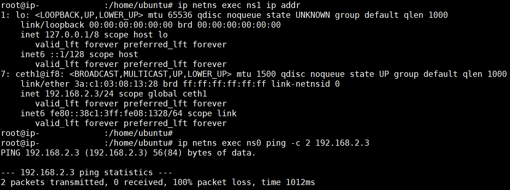 | | veth1 | <--- ceth1 in ns1 |