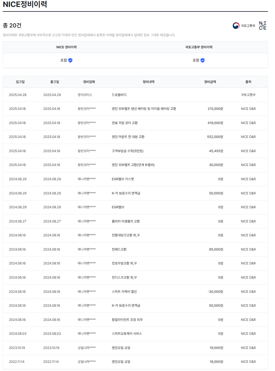 참고로 저는 중고로 사왓는데도 왠만한 이력 무료로 조회되네요;;;