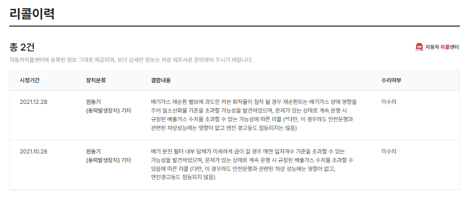 < 리콜 이력 조회 >