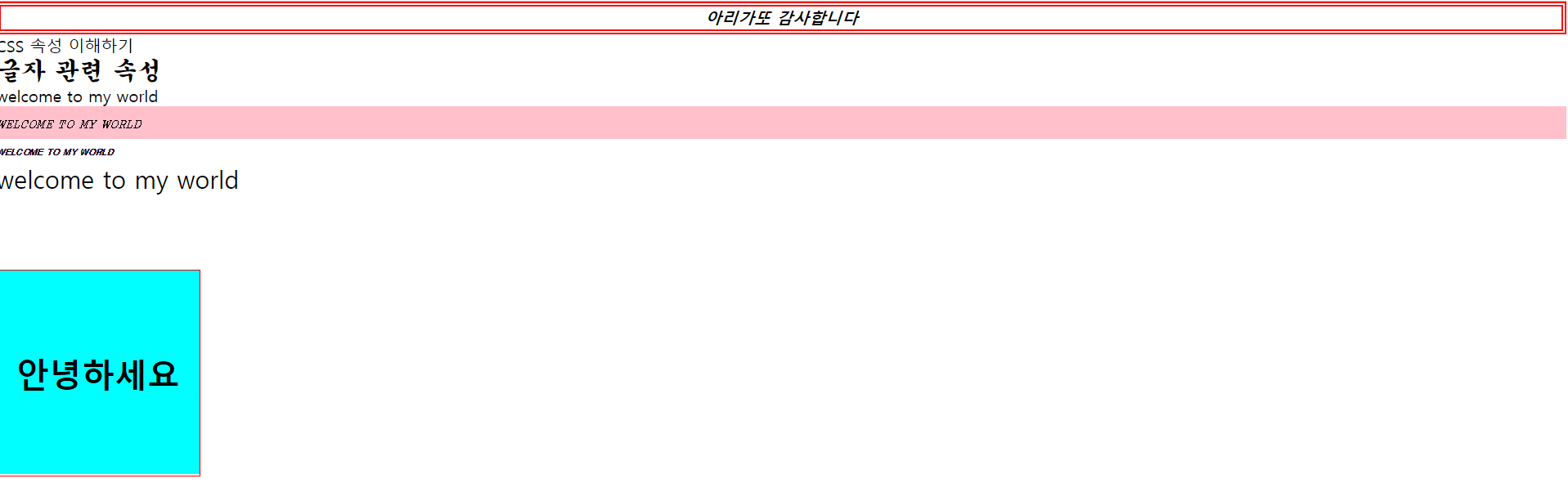 <p id="abc">글자 관련 속성</p>