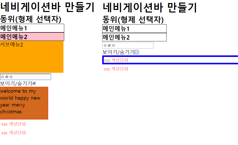 | 선택자~선택자 | h1~div | A이후에B들 |