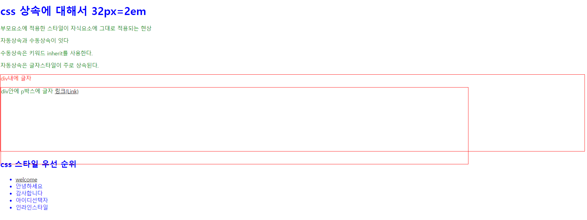<p>자동상속은 글자스타일이 주로 상속된다.</p>