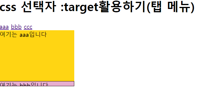 <h1>css 선택자 :target활용하기(탭 메뉴)</h1>