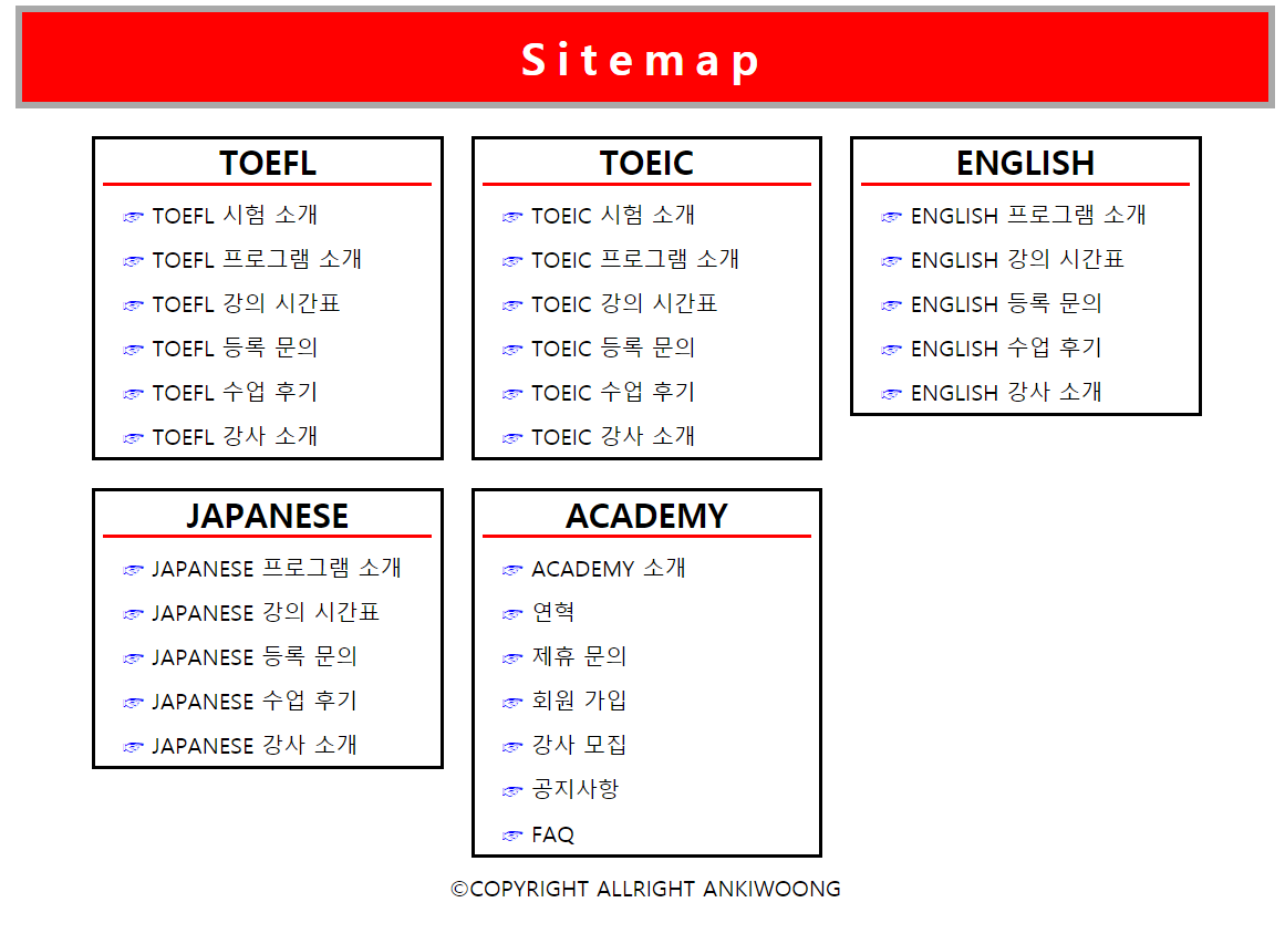 | HTML5 - 190609 Basic Study 29(Sitemap 제작 - 1) (0) | 2019.06.09 |