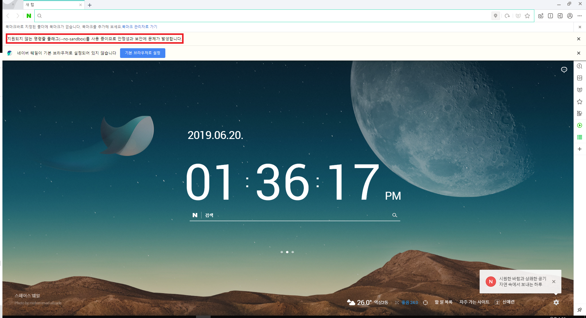 네이버 웨일 설치 후 실행 하면 제목없음 페이지 지속적으로 뜨는 현상 발생