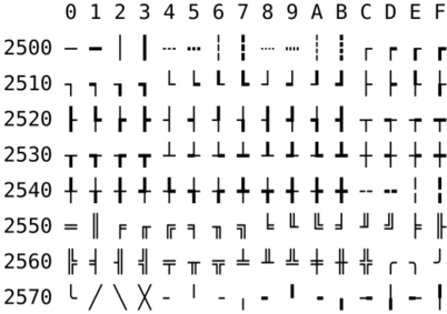 CLI 명령어 입출력 화면에서 표나 그림을 그리기 위해 사용되던 방법과 비슷하다.