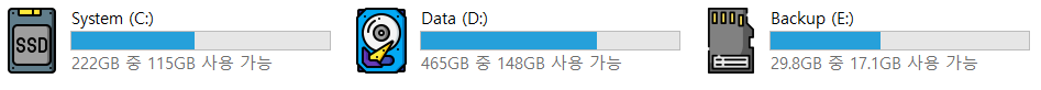 내 컴퓨터에 들어왔을때 지금 장착되어있는 타입이 SSD 인지 HDD 인지 아니면 메모리 CARD인지