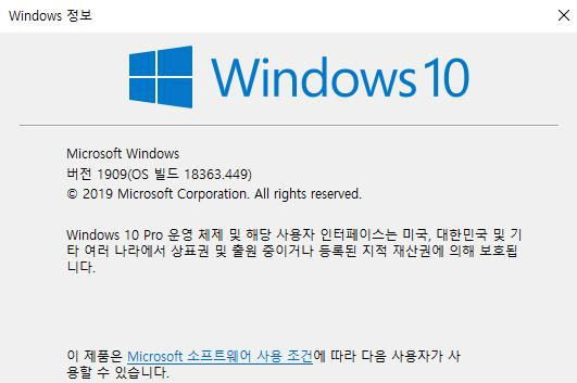 현재 버전이 1903 이며 빌드 번호가 18362.388 이상일 경우만 사용 가능