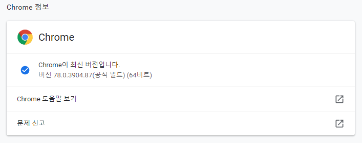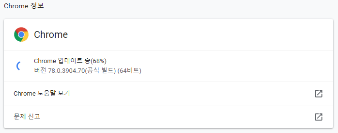 크롬에서 버전 업데이트 체크 후 자동으로 최신 버전으로 업데이트