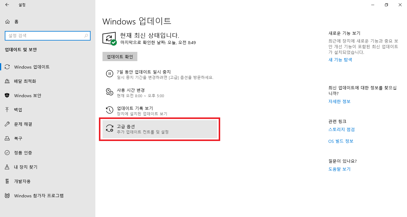 업데이트 확인