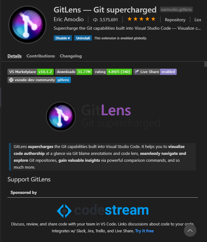 GitLens supercharges the Git capabilities built into Visual Studio Code. It helps you to visualize code authorship at a glance via Git blame annotations and code lens, seamlessly navigate and explore Git repositories, gain valuable insights via powerful co