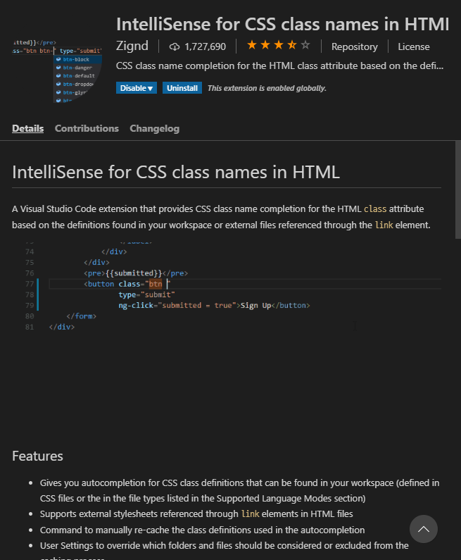 OverviewQ & ARating & Review IntelliSense for CSS class names in HTML A Visual Studio Code extension that provides CSS class name completion for the HTML class attribute based on the definitions found in your workspace or external files referenced through