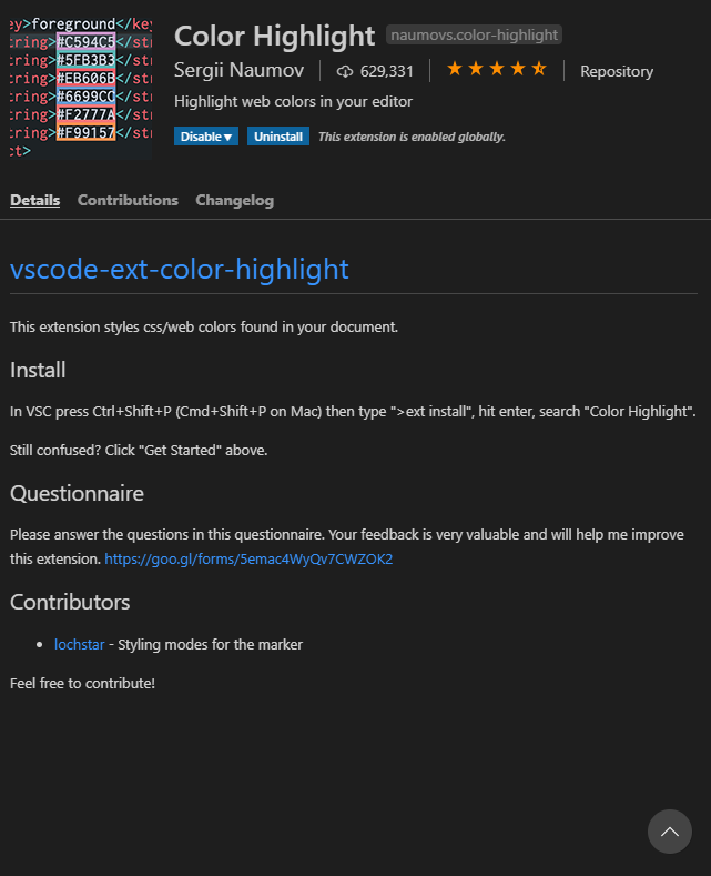 OverviewQ & ARating & Review This extension styles css/web colors found in your document. Install In VSC press Ctrl+Shift+P (Cmd+Shift+P on Mac) then type ">ext install", hit enter, search "Color Highlight". Still confused? Click "Get Started" above. Quest